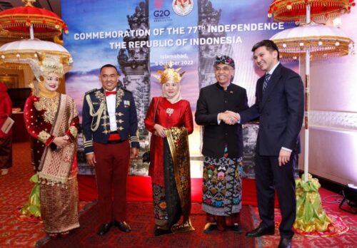 Indonesia celebrated the 77th Anniversary of its Independence Day on 05 Oct 2022. Mr. and Mrs. Adam M. Tugio hosted a grand reception to celebrate this auspicious day in Islamabad at Serena Hotel that was well attended by highly placed officials, envoys, and other friends of Indonesia in Pakistan.