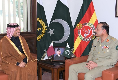Defence Ambassador Qatar Calls on COAS Pakistan By Admin - January 30, 2023 0 684 Share Facebook Twitter Google+ Pinterest WhatsApp Rawalpindi: Ambassador of the State of Qatar , H.E. Sheikh Saoud bin Abdulrahman Al Thani, called on General Syed Asim Munir, Chief of Army Staff. Both officials discussed ways to strengthen bilateral relations & matters of mutual interest.
