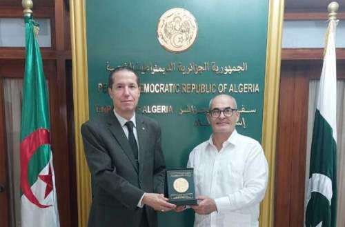 ISLAMABAD : Ambassador Dr. Brahim Romani received the newly appointed Ambassador of the Republic of Cuba to Pakistan, H.E. Mr. Damian Cordero Torres, who paid a courtesy call at his office.