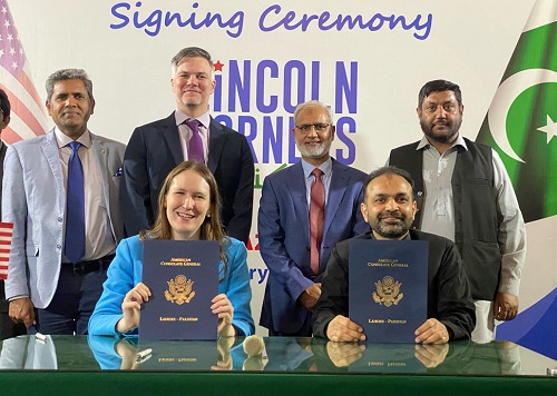 Lahore: American Consulate will soon open  Lincoln Corner at Quaid-e-Azam Library, Lahore. Consul General Ms Hawkins signed a Memorandum of Understanding with the Quaid-e-Azam Library & the Punjab Public Libraries Department to create this high-tech, educational center in the capital city of Punjab.