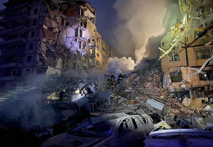 ISLAMABAD: The Russian Federation continues to carry out terrorist acts against Ukrainians. On January 14, 2023, a missile attack was carried out on the territory of Ukraine, as a result of which many civilian buildings were damaged in various cities, in particular, in the city of Dnipro, the Russians hit a multi-story building, which was completely destroyed. The rocket shelling of the city of Dnipro took place at 3:43 p.m., as a result of which the second to ninth floors of a nine-story residential building were partially destroyed.