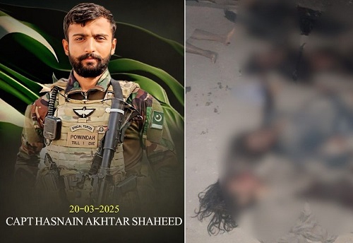However, during the intense fire exchange, Captain Hasnain Akhtar (age: 24 years, resident of District Jhelum), who was leading his troops from the front, having fought gallantly, paid the ultimate sacrifice and embraced Shahadat.