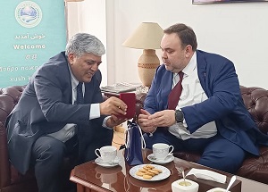 On February 26, 2025, in Islamabad, the Deputy Minister of Foreign Affairs of the Republic of Belarus Evgeny Shestakov held a meeting with the Director General Europe Desk at Ministry of Foreign Affairs, Mr. Shafqat Ali Khan.