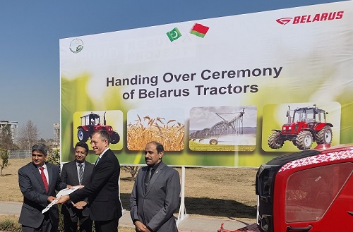 Ambassador Andrei Metelitsa took part in the ceremony of donating two Belarusian MTZ-1025.3 tractors to the Pakistani Side on behalf of the President of the Republic of Belarus Alexander Lukashenko. The tractors were handed over to Pakistani side on 19 Feb in Texila.