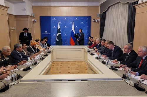 Moscow: June 7 , 2023 – Chairman Senate Muhammad Sadiq Sanjrani held delegation level talks with Chairman of the Russian Duma (lower house) Mr. Volodin. Chairman Senate emphasised parliamentary exchanges as an important component of effective diplomacy.