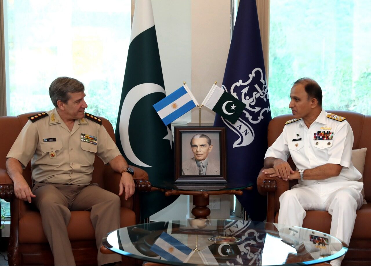 Upon arrival, Chief of the Joint Staff of Argentina Armed Forces was received by Naval Chief. During one-on-one meeting between the dignitaries, matters of mutual interest including bilateral collaboration and regional security were discussed.