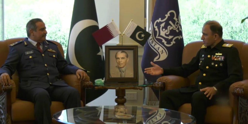 Commander Qatar Amiri Air Force, Maj Gen (pilot) Salem Hamad Eqail Al-Nabet met with Chief of the Naval Staff Admiral Muhammad Amjad Khan Niazi at Naval Headquarters. During the meeting, matters of mutual interest, regional security & bilateral collaboration were discussed.