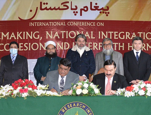 Islamabad: 28 Dec 2021 – Participants of an International conference on peacemaking, national integration, social cohesion and Interfaith Harmony have agreed that academia, religious scholars, Aima and media possess vital role in promoting interfaith harmony, peace and social cohesion in the society as well as there is a dire need to disseminate true picture of Islam to counter Islamophobia.