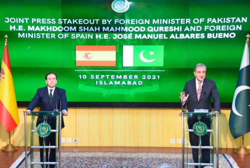 Islamabad; 10 Sep 2021 -Foreign Minister of Spain Jose Manuel Albares Bueno is in Islamabad on Pakistan visit where he held wide ranging talks with Foreign Minister Makhdoom Shah Mahmood Qureshi on Afghan situation and bilateral relations today.