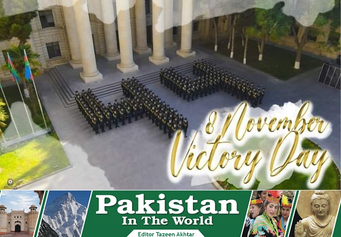 Azerbaijan is celebrating Victory Day on 08 Nov 2021 in commemoration of her winning against Armenia when Azerbaijan forces thwarted the aggression sacrificing their precious lives. Civilians of Azerbaijan also paid heavy toll in defending their motherland. More than 3000 military and civil were martyred during 44 days and nights war cum aggression that was not only aggression but truly it was aggravated aggression if we see the attacks on cities and civilian installations.