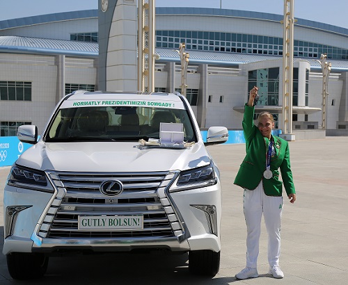 According to the Resolution of the President of Turkmenistan, Polina Guryeva was dignified with the title “Honored Master of Sports”. On behalf of the Head of state, she was awarded with a new elite apartment and an automobile of “Lexus LX570 Sport Plus” brand. P.Guryeva also received a monetary reward in the amount of 50 000 US dollars.