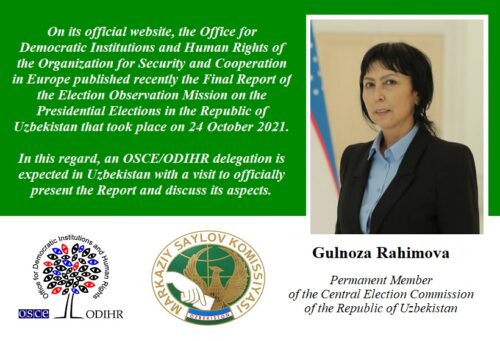 On its official website, the Office for Democratic Institutions and Human Rights (ODIHR) of the Organization for Security and Cooperation in Europe (OSCE) published recently the Final Report of the Election Observation Mission (EOM) on the Presidential Elections in the Republic of Uzbekistan that took place on 24 October 2021. In this regard, an OSCE/ODIHR delegation is expected in Uzbekistan with a visit to officially present the Report and discuss its aspects.