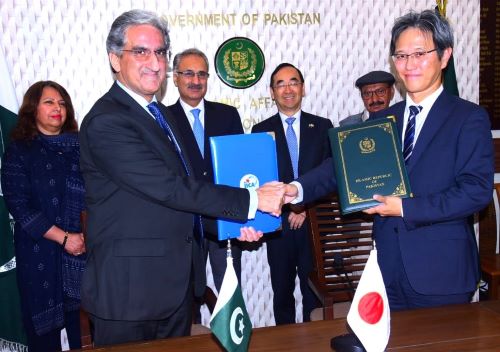 The Notes to this effect were signed and exchanged between H.E. Mr. WADA Mitsuhiro, Ambassador of Japan and Dr. Kazim Niaz, Secretary of the Ministry of Economic Affairs on April 4, 2024. On the same occasion, amended grant agreements of the project were signed and exchanged today between Mr. Naoaki Miyata, Chief Representative of JICA Pakistan Office and Mr. Saeed Ashraf Siddiqui, Joint Secretary of the Ministry of Economic Affairs.
