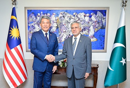 ISLAMABAD: Deputy Prime Minister and Foreign Minister Senator Mohammad Ishaq Dar  welcomed the Foreign Minister of Malaysia Dato Seri Utama Haji Mohamad Bin Haji Hasan on his arrival at the Ministry of Foreign Affairs.