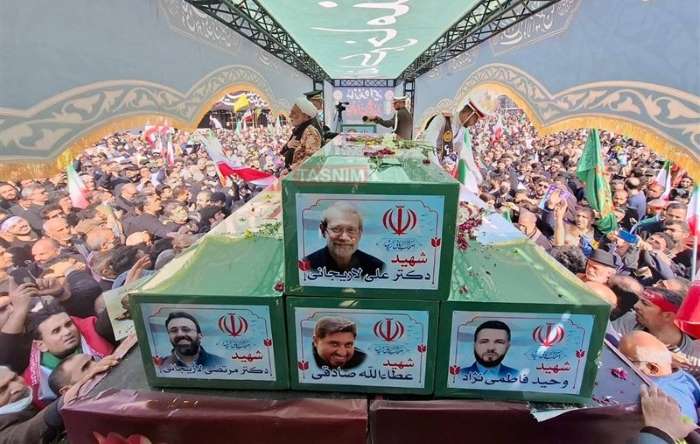 Tehran, IRNA – A massive funeral procession is underway in the Iranian capital for Secretary of Supreme National Security Council Ali Larijani, Commander of Basij Volunteer Force Major General Gholam Reza Soleimani, and dozens of Navy servicemen martyred in the ongoing US-Israeli war of aggression.