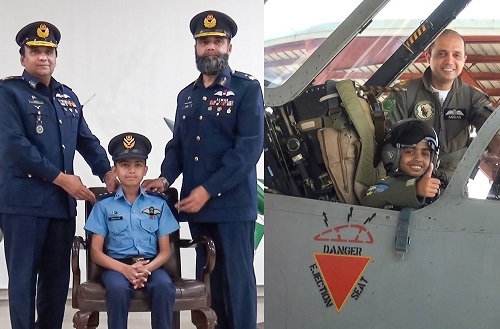 The child was also given a simulated experience of a fighter aircraft and visited various units / wings of the base. Parents of Abdullah and founding President of Make- A-Wish Foundation, Mr Ishtiaq Baig also accompanied him. Abdullah was elated and jubilant and showed extreme joy upon undergoing this unique and unprecedented experience.