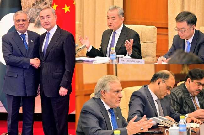 Deputy Prime Minister /Foreign Minister @MIshaqDar50 today met with H.E. Wang Yi, Member of the Political Bureau and Minister of Foreign Affairs, in Beijing upon the invitation of the latter.