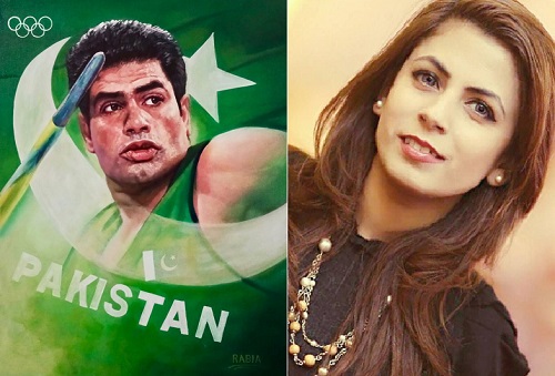 Pakistani Artist Pays Tribute to Arshad Nadeem by Drawing his Portrait in Pakistani Flag Colors