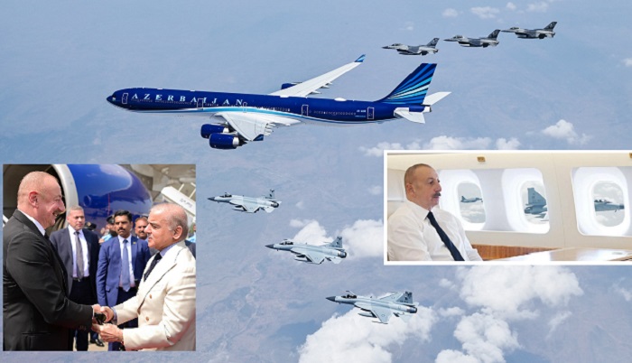As soon as it entered the borders of Pakistan, the aircraft of the President of Azerbaijan was escorted by the fighter jets of the Pakistan Air Force. The aircraft of the President of Azerbaijan was escorted to Islamabad by the fighter jets of the Pakistan Air Force.