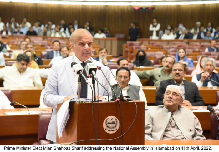 Prime Minister Elect Mian Shehbaz Sharif addressing the National Assembly in Islamabad on 11th April, 2022.