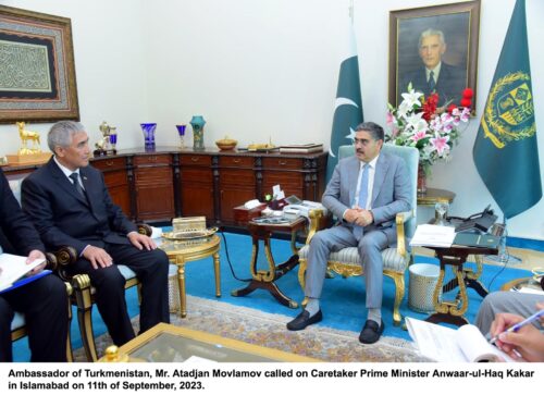 Ambassador of Turkmenistan, Mr. Atadjan Movlamov called on Caretaker Prime Minister Anwaar-ul-Haq Kakar in Islamabad on 11th of September, 2023.