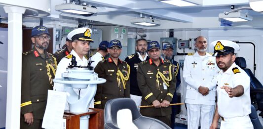 Karachi, 19 Jan 25: Principal Staff Officer (PSO) of the Armed Forces Division of Bangladesh, Lieutenant General SM Kamrul Hassan, visited Karachi, where he met with senior officials of Pakistan Navy. He called on Commander Pakistan Fleet, Rear Admiral Abdul Munib; Commander Coast, Rear Admiral Faisal Amin; and Managing Director of … Continue reading PRINCIPAL STAFF OFFICER (PSO) OF THE ARMED FORCES DIVISION OF BANGLADESH VISITS KARACHI