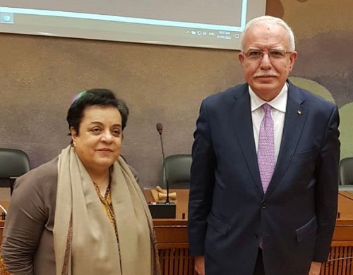 Geneva: 01 March 2022 – The Minister of Foreign Affairs and Emigrants, Dr. Riyad Al-Maliki, a meeting with the Minister of Human Rights of Pakistan d. Sherine Mazari in Geneva on the sidelines of the meetings of the Human Rights Council.