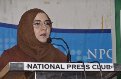 Other speakers included President Pakistan Federal Union of Journalists Afzal Butt, Editor Pakistan in the World, Daily Azkaar, Member Standing Committee Council of Pakistan Newspapers Editors Mr. Tazeen Akhtar, Professor NUML University Dr. Saeed Tayyab, Secretary National Press Club NPC Khalil Raja, Secretary Finance NPC Ms Nayyer Ali, President Rawalpindi Islamabad Union of Journalists Abid Abbasi, President All Pakistan Private Schools Association Dr Afzal Babar, PMLN AJK leader Mr. Naseebullah GurdiziChairman Interfaith Forum Mr. Asif Khurshid.