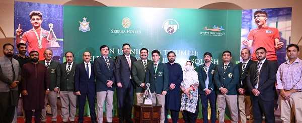 In a ceremony hosted by Serena Hotels under its sports diplomacy initiative partnering with the Pakistan Squash Federation, Senior Vice President, Air Vice Marshal, Mr. Kazim Hammad, was the chief guest on the auspicious occasion, and he presented Hamza Khan with the Trophy along with his family making it even more special for the young athlete.