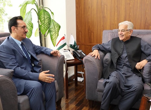 Islamabad: – H.E. Sharifzoda Yusuf Toir, Ambassador of the Republic of Tajikistan called on Minister for Defence , Defence Production and Aviation, Khawaja Muhammad Asif in his office in Islamabad on 18 Sep 2024. During the meeting matters pertaining to bilateral defence and economic cooperation came under discussion.
