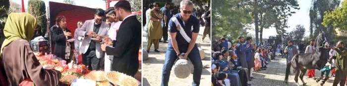 The Orange Festival have been hosted for foreign diplomats for the last 13 years in the ancient city of Gandhara and Buddhist civilisations. The dance of horses on drumbeats and the traditional sports of stone lifting and the world-famous citrus Khanpuri oranges were the centre of attraction among the diplomats and their families, especially children.
