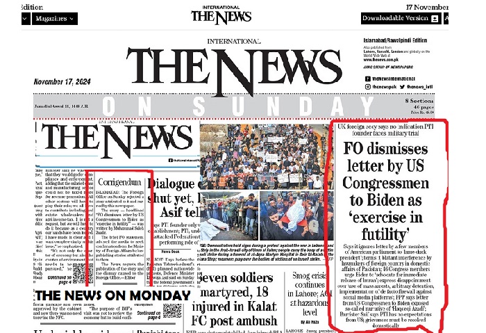 The story was about the letter from US Congressmen and women to President Biden on Imran Khan’s release. The staff reporter not only attributed a statement of MOFA Pakistan to the letter but selected the words as well. He could have been little safe by “FO has rejected the letter” but he thought better to choose the proper words ” Exercise in Futility.”
