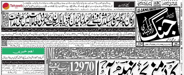In Daily Jang the main story on 17 Nov is there and not removed