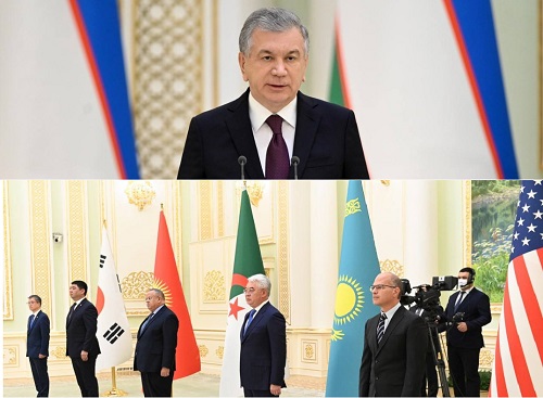 Tashkent: On November 24, 2022, a solemn ceremony of presenting credentials by newly appointed foreign ambassadors to Uzbekistan took place. The President of Uzbekistan Shavkat Mirziyoyev received credentials from the Ambassadors of the Republic of Korea Kim Hee-sang, the Kyrgyz Republic Musa Jamanbaev, the People’s Democratic Republic of Algeria Boumediene Guennad, the Republic of Kazakhstan Beibut Atamkulov, the United States of America Jonathan Henick.