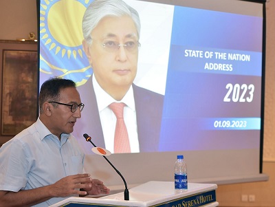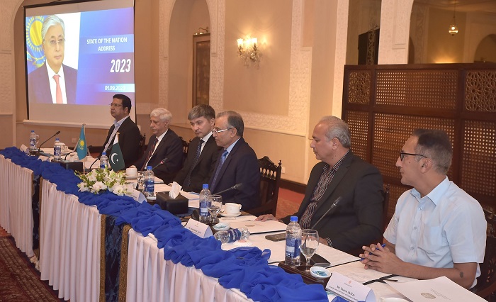 ISLAMABAD: 08 Se- 2023 – President of Republic of Kazakhstan H.E Kassym Jomart Tokayev is moving forward gradually on what the constitutional reforms were meant for. The reforms incorporation to the constitution was accomplished in the first quarter of current year. Since then the leader of the nation is refreshing the Parliament and the Government to make them alert on the targets they have to achieve. President’s address to the Parliament on first Sep 2023 was in the same connection. This address was mainly on economic part of the reforms. Embassy of Kazakhstan in Pakistan hosted a conference in Islamabad with Intellectuals, experts, opinion makers and the media persons to discuss and analyze the main points of the address of the President.
