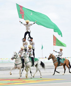 The decoration of the current anniversary military parade was the march around the square of a group of horsemen – military servicemen on the “heavenly” Akhal-Teke horses which for centuries have been full participants of the national celebrations. Horses were at all times faithful friends and companions of Turkmens.