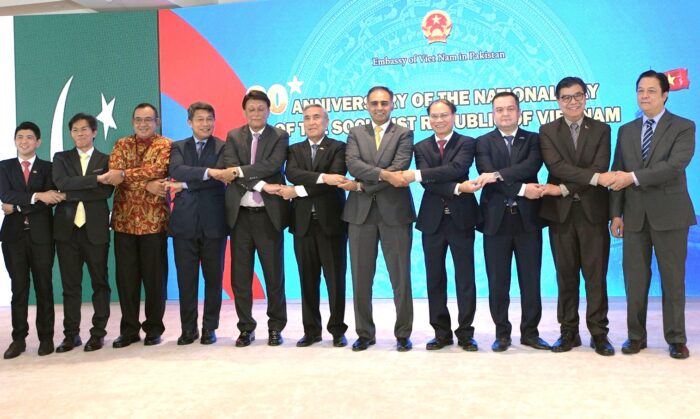Minister, on behalf of Government and people of Pakistan extended heartily felicitations to the Government, people and embassy staff of Viet Nam. He expressed best wishes for the prosperity and well being of Viet Nam in the future. He emphsized on the shared commitment of both countries for peace and prosperity in our countries and in the World. He expressed his gratitude for Viet Nam’s support for Pakistan at ASEAN.